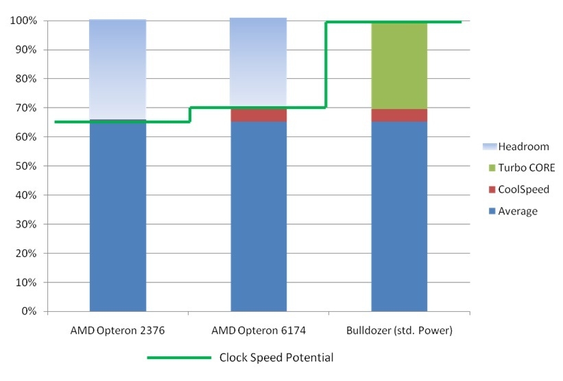 A melhoria no desempenho se dará em decorrência do aproveitamento constante dos núcleos. Ao contrário dos antigos processadores AMD, os núcleos dos Bulldozers não ficarão ociosos. Já o custo será reduzido automaticamente, pois considerando o uso compartilhado de recursos, fica evidente que menos peças serão necessárias.