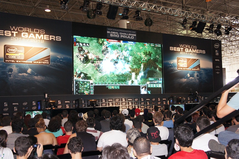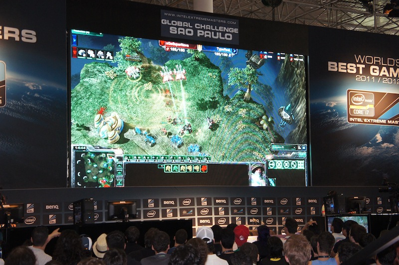 Como nós contamos no começo da Campus Party Brasil 2012, o estande da Intel aqui no evento traria o campeonato Intel Extreme Masters para a América Latina pela primeira vez. E durante vários dias ocorreram eliminatórias do game Starcraft II em um torneio que reuniu 16 dos melhores jogadores de todo o mundo.