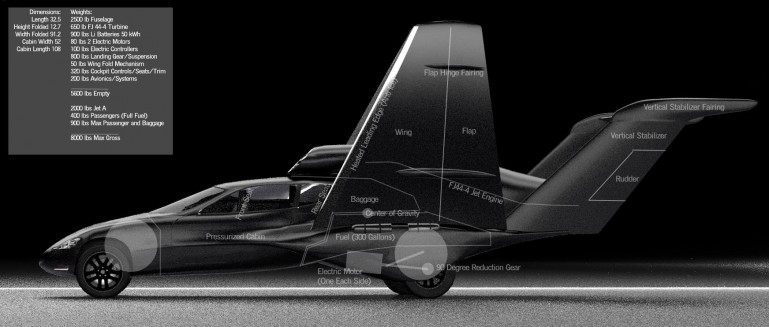 Isso poderia estar em vias de mudar com o desenvolvimento do GF7, o carro que você confere nas imagens. Ele conta com asas retráteis, uma turbina de jato e tem uma aparência híbrida entre carro e avião que parece ser mais eficiente para terra e para o ar que a maioria dos “concorrentes”. A turbina desse carro voador é uma adaptação de um motor aeronáutico tradicional de 3.500 lb. Isso garante uma altitude máxima de 12 mil metros e pode voar a 885 km/h. Obviamente, esse desempenho não se repete na estrada.