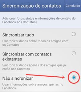 Nota: este procedimento não surtirá efeitos caso você não siga as orientações do "Passo 1", pois a substituição dos contatos pelo app do Facebook aconteceria novamente.