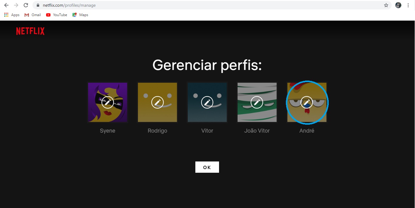 2. Selecione o perfil que deseja excluir clicando na imagem do usuário.