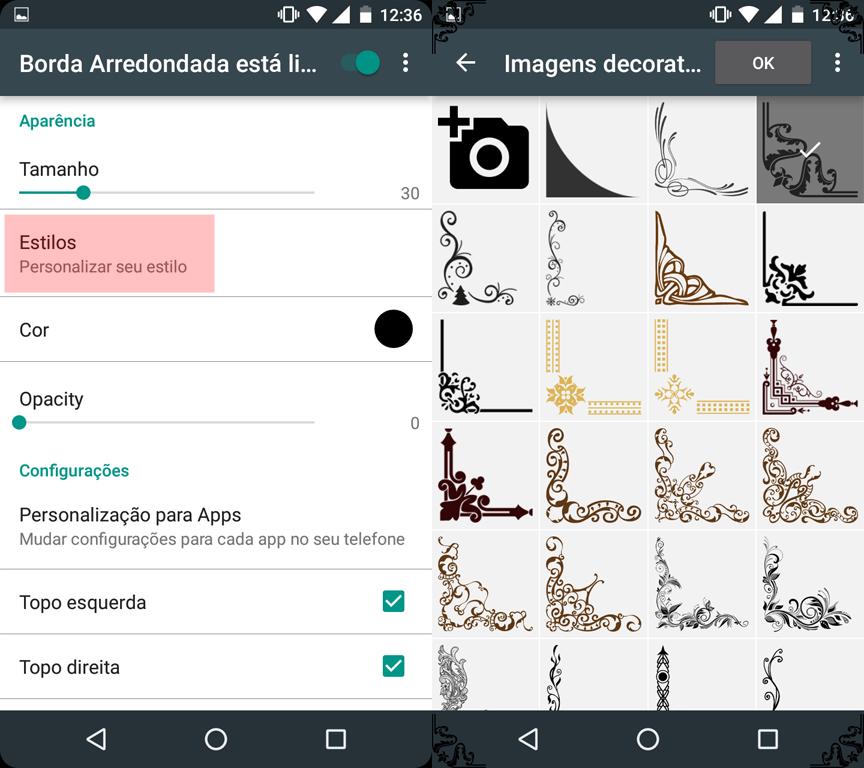 Passo 3. Em “Estilos”, você pode escolher entre diversos modelos de borda.