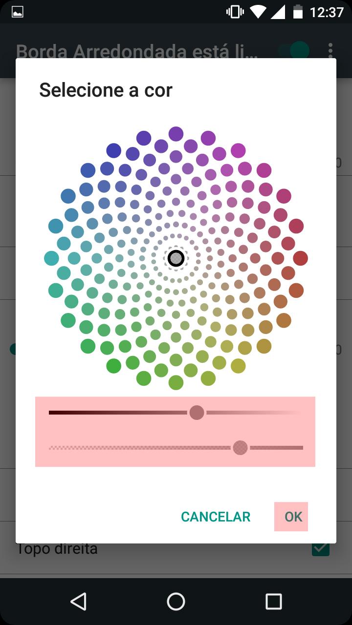 Passo 4. Você pode também escolher uma cor para a borda tocando na opção “Cor” e usando os deslizadores. E no item “Opacidade”, você escolhe uma transparência para a borda.