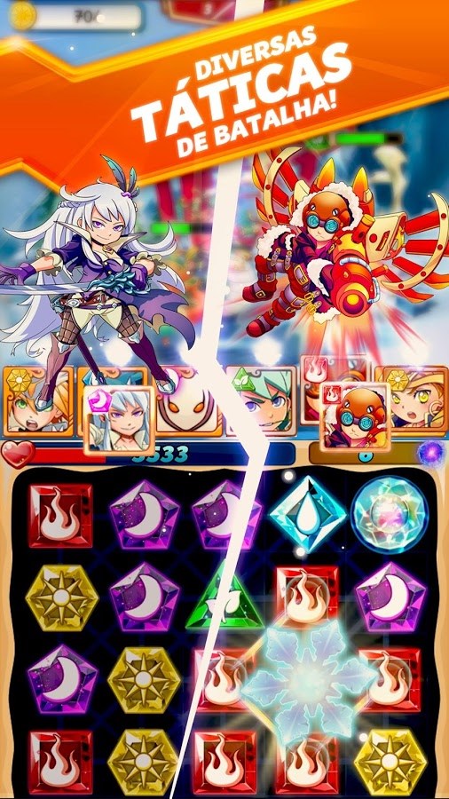 Este é um misto de RPG com quebra-cabeça totalmente em português. Todos os personagens têm seus próprios elementos entre mar, fogo, ar, sol e lua — algo que traz tanto vantagens quanto desvantagens.
