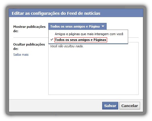 Pronto! Agora todas as mensagens que seus amigos disponibilizarem serão visualizadas a partir do Feed de Notícias, na página inicial do Facebook. Recomendamos que todos ativem esta opção, exceto aqueles que possuem centenas de amigos.
