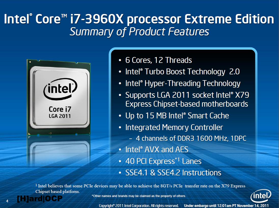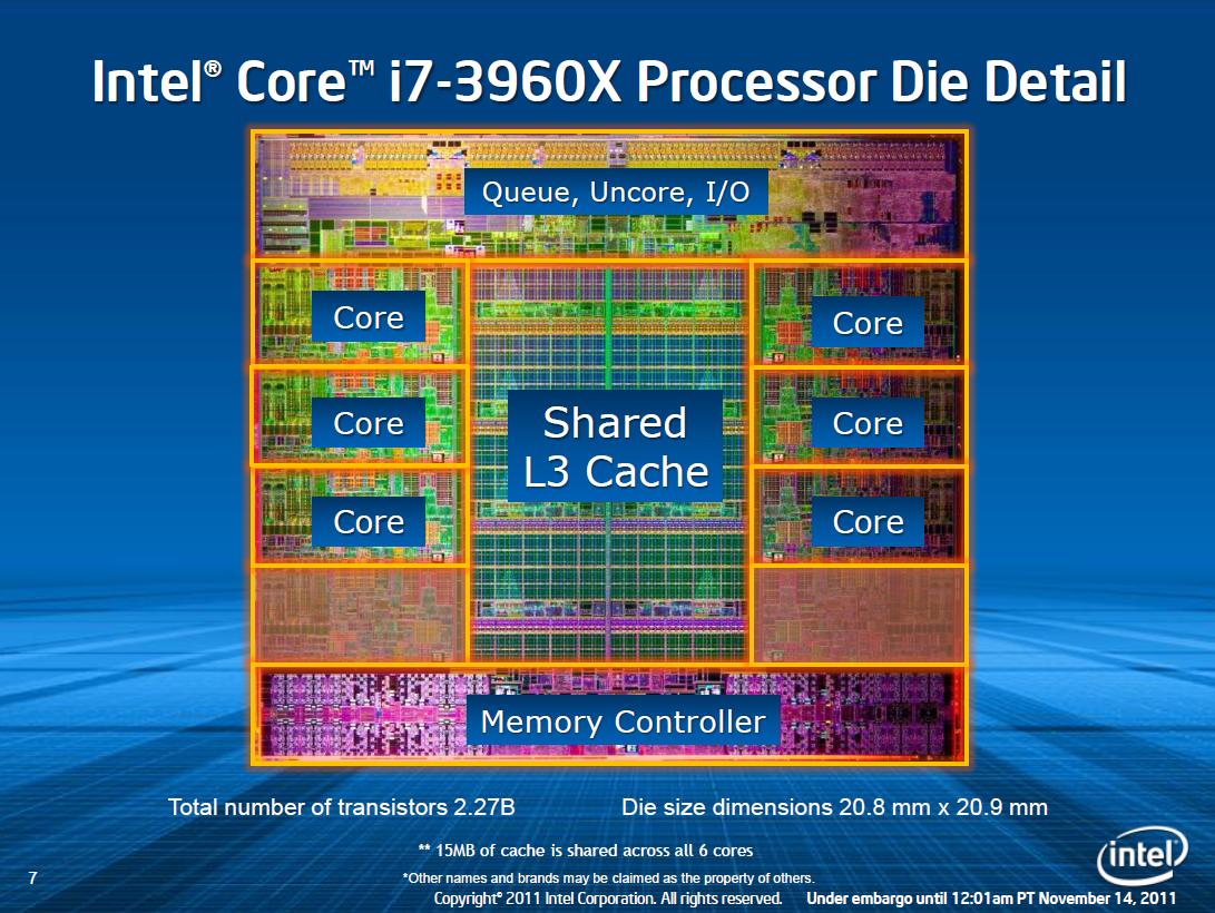A Intel lançou no mercado norte-americano o mais novo modelo de processadores da linha Sandy Bridge Core i7 Extreme (os mais potentes de cada geração). Sob o nome i7-3960X, o chip traz alguns recursos arrasadores que superam, de longe, até mesmo os mais completos dispositivos que faziam parte do catálogo da empresa.