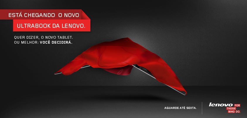 Há poucos minutos, a Lenovo divulgou, em sua fanpage oficial, uma imagem misteriosa para anunciar o lançamento do seu novo ultrabook. A empresa está planejando anunciar o produto nesta sexta-feira (26), por sinal o mesmo dia em que o Windows 8 será lançado oficialmente.