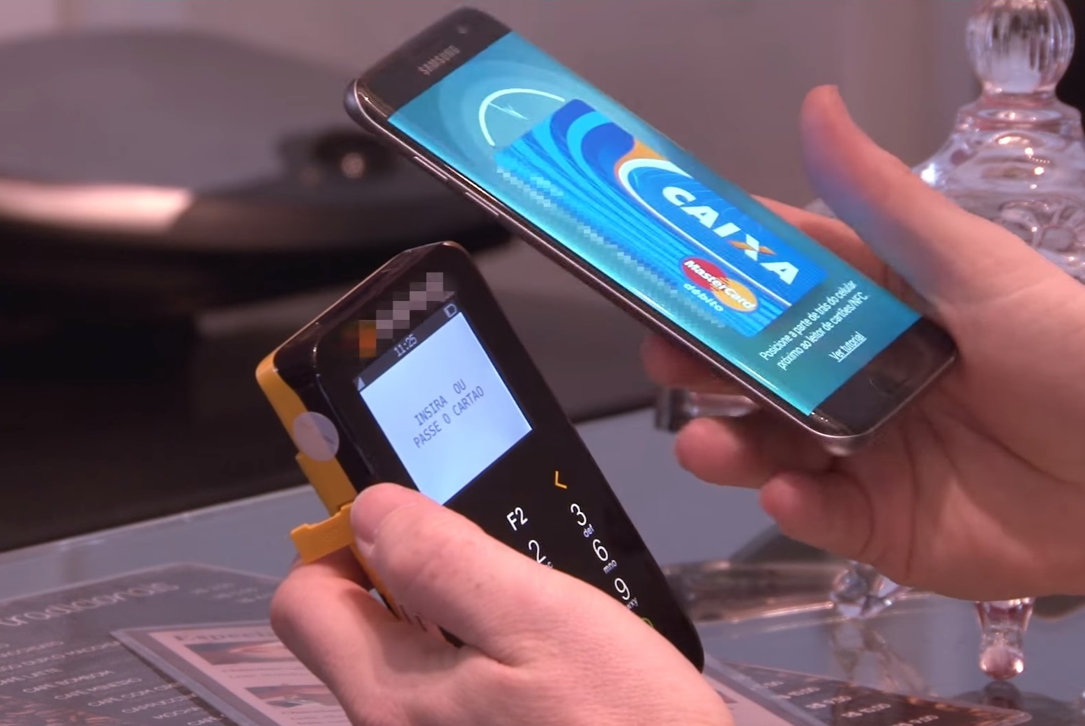 Se você tem um Galaxy S6 ou S6 edge, é necessário encostar o dispositivo no ícone do NFC da maquininha. Nesse caso, o operador tem que digitar o número 1 na máquina, escolher crédito ou débito e colocar o valor. Só então você encosta o celular no local indicado, e o pagamento é efetuado. Nesse formato, você raramente vai precisar digitar sua senha.