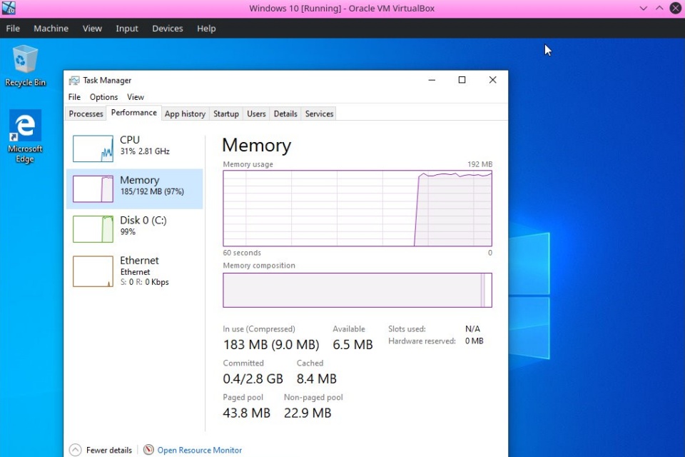 Máquinas virtuais são úteis para todo tipo de finalidade, incluindo testes absurdos e quase sem sentido. O flagrante mais recente vem do site Tom’s Hardware, que flagrou o usuário Sakura NØri (@0xN0ri), do Twitter, fazendo o Windows 10 rodar em uma máquina virtual com apenas 192 MB de RAM.