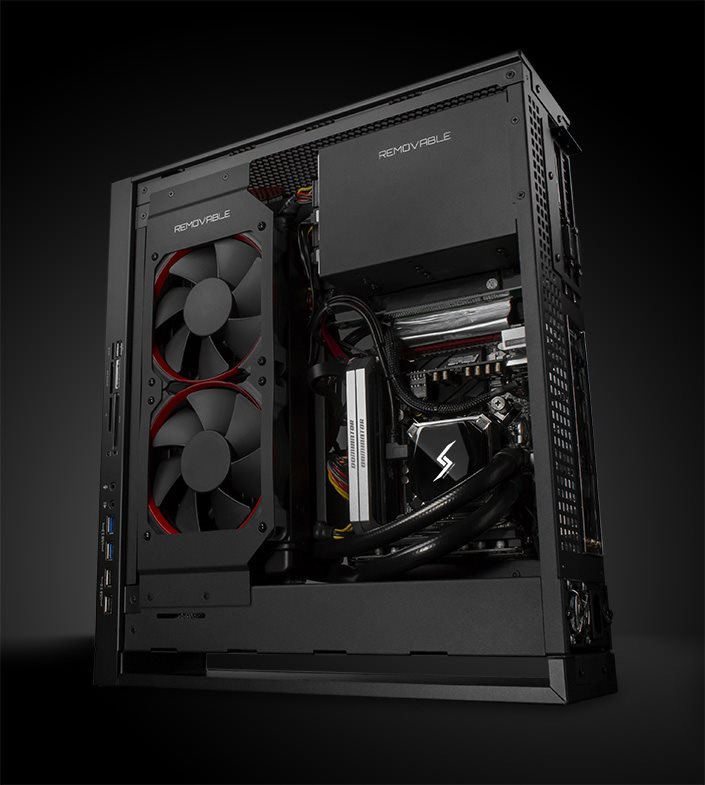 Com um design fino e otimizado para a ventilação, o computador ainda conta com compartimentos removíveis para as placas de vídeo, disco rígido, leitores ópticos e sistemas resfriamento - permitindo assim a troca ou manutenção do hardware de uma maneira fácil. O sistema ainda monitora constantemente a temperatura e o barulho do PC por meio do controle HydroLux, certificado pela Digital Storm.