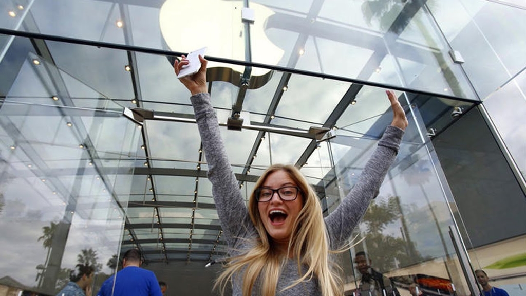 Veja a alegria dessa moça ao comprar um novo iPhone no dia de seu lançamento