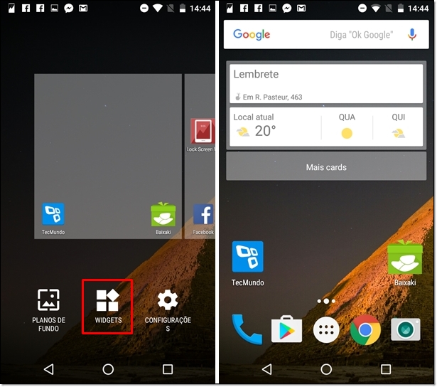 Que tal, então, remover alguns – se não todos – desses atalhos interativos? Toque e segure sobre um widget e mova a janela até a opção “Remover”.