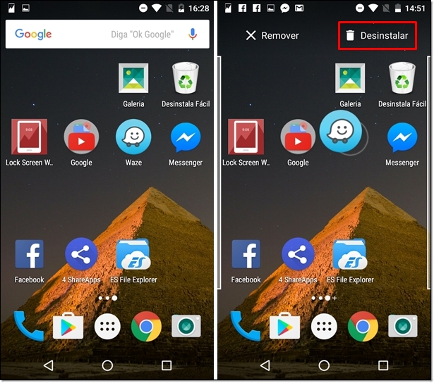 Perceba que, até aqui, nenhum aplicativo auxiliar precisou ser usado para que as opções que permitem a otimização no gerenciamento de bateria fossem ativadas. O processo de desinstalação de apps não usados pode ser feito, também, a partir de apenas um clique: em sua tela inicial, toque e segure sobre um aplicativo que pode ser dispensado e mova-o até o campo “Desinstalar”.
