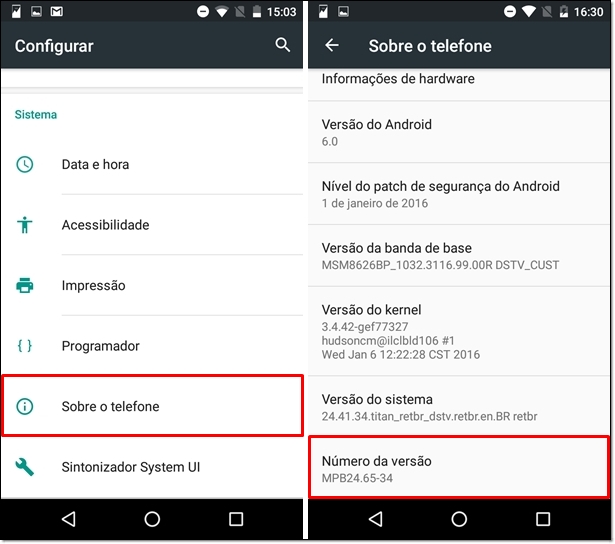 Para restringir o acesso de apps aos seus dados pessoais, podem ser impostas limitações de permissões. Para isso, será necessário ativar as opções de desenvolvedor: a partir da opção “Configurar”, role para baixo e clique em “Sobre o telefone”.