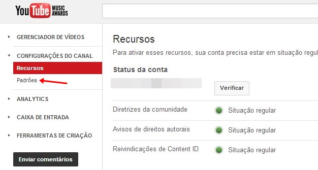 Acesse “Padrões”, à esquerda da tela.