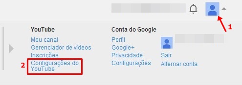 Clique sobre a imagem de exibição do seu perfil e selecione “Configurações do YouTube”.