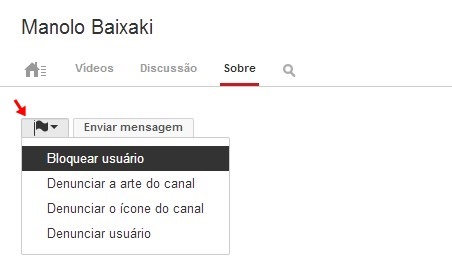 Clique sobre o ícone de bandeira e escolha “Bloquear usuário”.