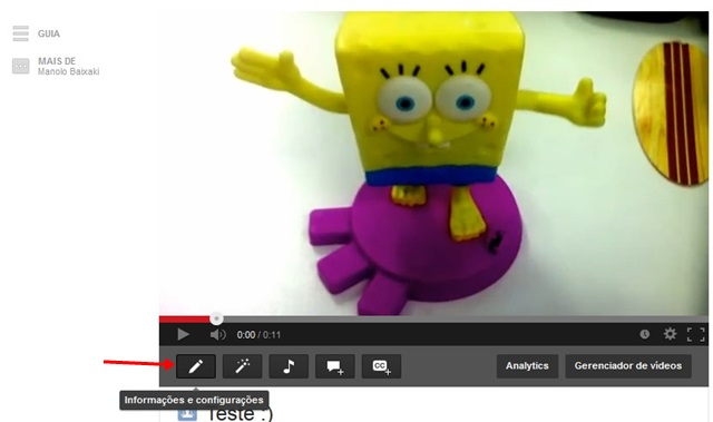 Acesse um vídeo já postado e selecione “Informações e configurações”.