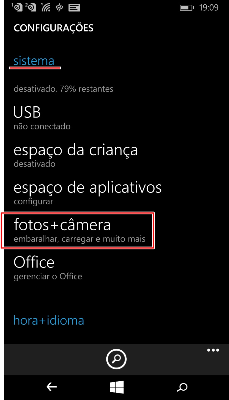 Na seção “Sistema”, clique em “Fotos+Câmera”.